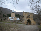 About the Site: The frescos of the Church of St. Nicholas in Kintsvisi belong to the13th century, the “Golden Age” of Georgian history, in which the highest level of artistic skill and refinement with a combination of both medieval abstractness and "secular" individuality unique to Georgian art. This can be seen in the superb portraits of Queen Tamar and members of her family, as well as with the traditional Biblical imagery. The frescoes are executed with refined artistry, imbued with a deep feeling of spirituality and show a profound knowledge of theology. They also display an adept use of brilliant, although limited, color and line, most notably the deep blue lapis used throughout the interior. On the ceiling, golden stars in the painted deep blue night sky further enhance the imagery, which offers an elegant, flowing style.