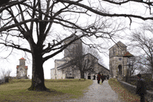 About the Site: The Church of the Virgin in Martvili (7th- 17th century) is one of the most significant monuments in Georgia and one of the oldest and most important centers in Western Georgia, having served as the Episcopal Chair of the Georgian Orthodox Church from the 10th Century until its abrogation by Russian governors at the beginning of 19th Century. At one time, the interior of the church was almost entirely decorated with paintings in various periods from the 14th to the 17th Centuries. The frescos are executed in a combination of both fresco and secco methods, and in the lower register of the church the portraits of kings and nobles are presented along with more traditional iconography. The paintings at Martvili are particularly outstanding because of a number of marvelous portraits of their donors, depicted with a distinctly Georgian combination of Byzantine style and unique individual details. Martvili was also the burial site of the Megrelian kings of Georgia.
